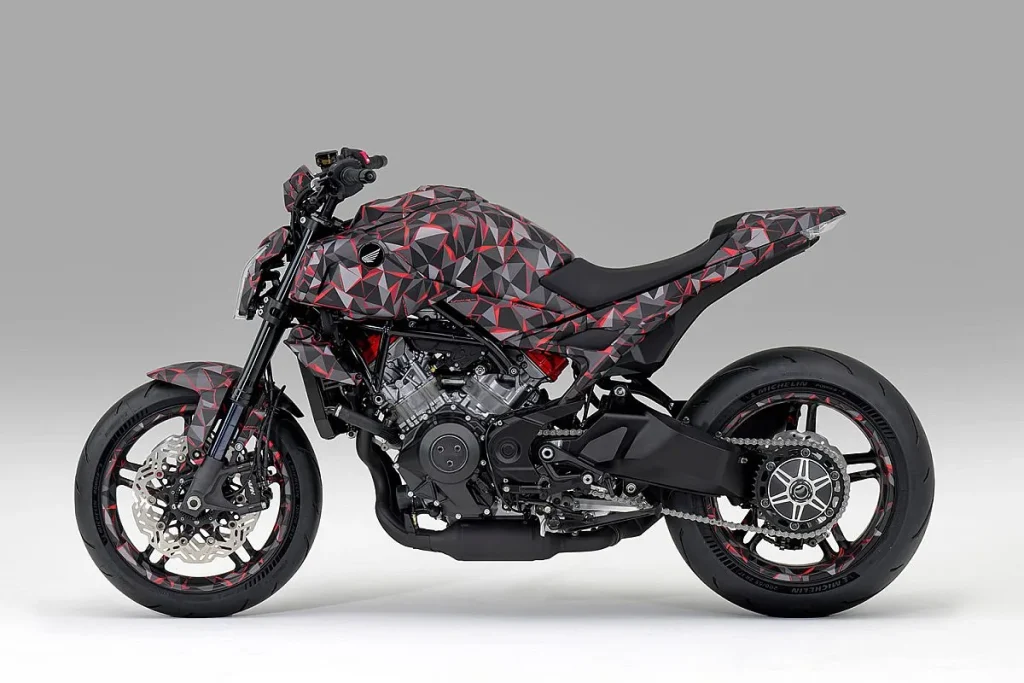 Tavaly a Honda bemutatta a háromhengeres motorját elektronikus vezérlésű kompresszorral. Idén a hatalmas EICMA kiállításon pedig egy lépéssel tovább vitték a koncepciót egy komplett modellel, a V3R 900 E-Compressor Prototype-tal. A 900 cm3-es motor egy rácsos vázba van beépítve, streetfighter stílusú, éles vonalú karosszériával és agresszív ergonómiával. Az oldalsó burkolatok aszimmetrikusak, feltehetően a kompresszor légáramlásának optimalizálása érdekében. A Honda V3R 900 E-Compressor Prototype kamuflázs színű, brutál kinézetű, de egy évet kell még várnunk, mire megérkezik a sorozatgyártott modell.