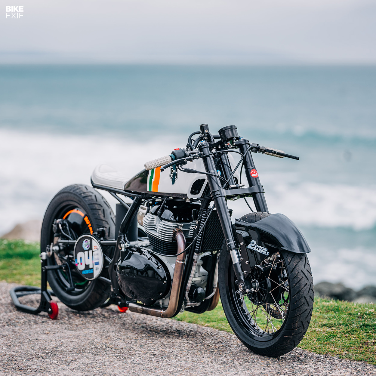 Biztosan gyorsnak kellett lennie, hiszen egy nitrós BMW 1250-et, egy szintén nitró meghajtású Indian Scout-ot (Randy Mamola-val a nyergében!) és egy supercharged 200+ lóerős Harleyt kellett megverni a híres gyorsulási versenyen. A Sinroja tesóknak a terve az volt, hogy a Royal Enfield egy korábbi, The Lock Stock néven futó (rohanó?) drag race célszerszámából merítenek ihletet.