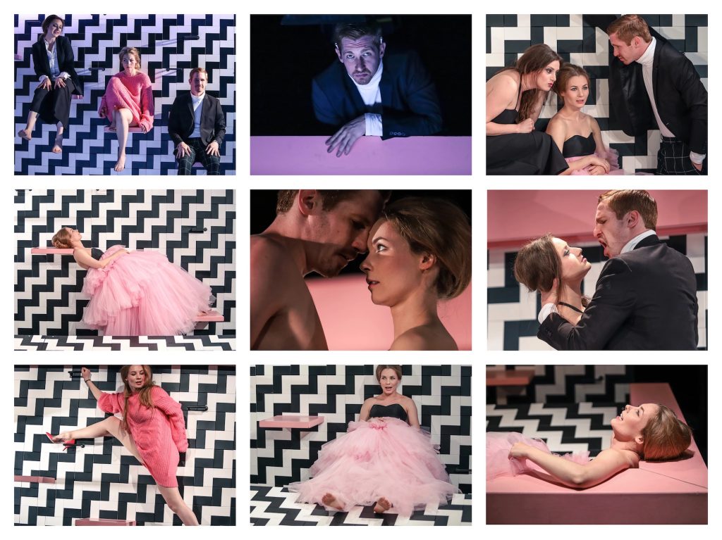 Három színész játszik a Stúdióban felépített egyetlen, háromfalú pop-art (baba)szobában az egyfelvonásos kamaradarabban. Persze fényekkel és a falra szerelt pink lépcsősorral/ülőkékkel és kapaszkodókkal, illetve egy billegő padlóval sokféle jelenet követi egymást a minimalista enteriőrben. Hotel szoba, New York-i utca, az aktuális pasi kecója, kórház pszichiátriai osztálya, Esther édesanyjának vidéki otthona elevenedik meg. (Díszlet és jelmez: Kálmán Eszter, fény: Kehi Richárd)